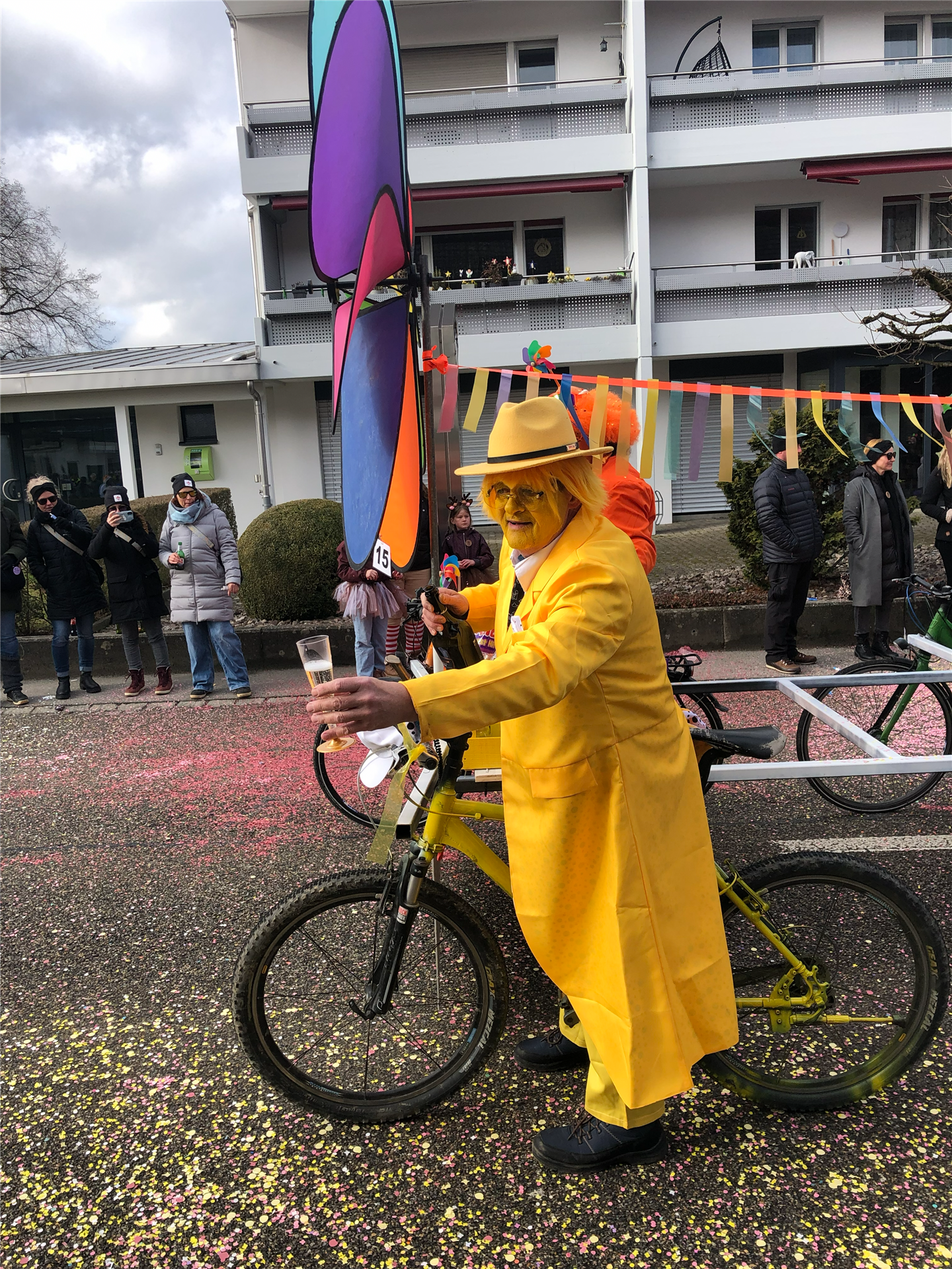 Vom 15. auf den 1. Platz – die Fridauer haben’s gepackt! Mit ihrem 6er Velomobil (ohne MFK:-), voller Energie und jeder Menge Spass haben sie beim Fasnachtsumzug Balenfuch ordentlich abgeräumt.